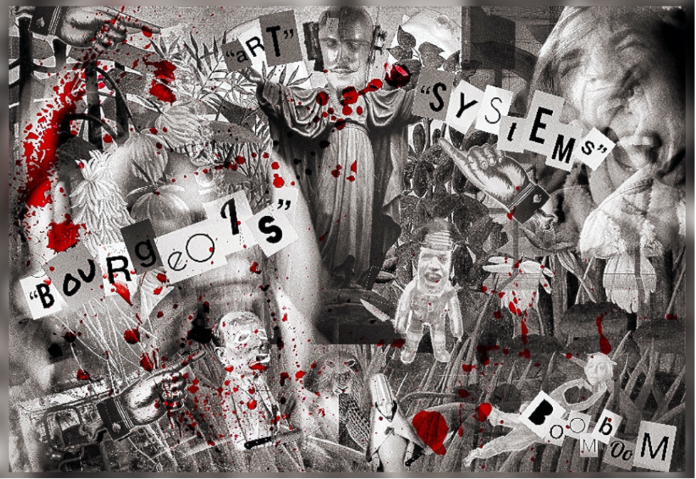In designing my visual artwork, I wanted to dialogue with the central principles of Dadaism by incorporating the aesthetic of photomontage, an art form inherent to the Dada movement as a means of vocalization, a means of protest against the suffering inflicted upon individuals by the First World War. In photomontage there is a surreal, skewed, fragmented objectivity that screams to challenge the status quo. Elements of notable Dadaist works are included. It was within my inspiration to depict a society that has emerged as a consequence of Dadaist ideals: that is, a systemless world that resides in a state of perpetual anarchy. It is meant to be unpleasant and bleak and violent.